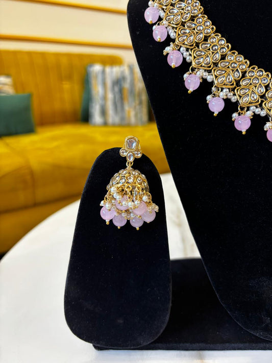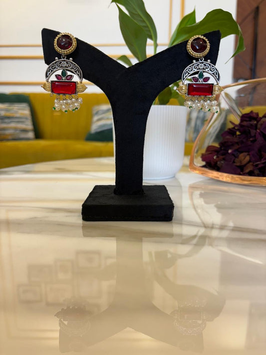 Pendent Set with Kundan and Red Stone Pearl Drop